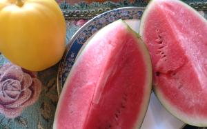 陽を浴びて育った鮮やかな緑、中身は鮮やかな赤色、甘〜い西瓜。