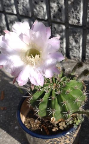 サボテンに花が咲く。たった一日のピンクの大輪の花。