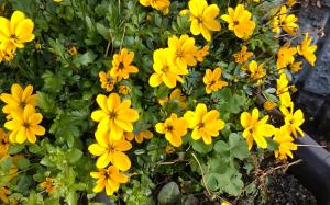 春色の欄の花やクリスマスローズ。すっきりした緑の葉が清々しい。