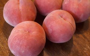 コロナ禍でお食事にも行けないのでと届けてくださった桃。冷たく冷やしていただこうと思う。