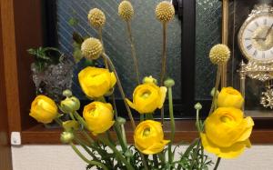 我が家には黄色いラナンキュラス7本。心豊かに。優しく微笑んでいるように。