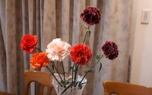 例年は5月の第2日曜日が母の日。今年は5月が母の日月間と。いつもお世話になっているお花屋さんは今年のゴールデンウイークも開いていて、例年より先にカーネーションの美しいを見つけ購入しました。いろいろなカラーのカーネーション少し大ぶりの大輪。センス良くお願いします。と、選んでいただき、リビングにセンス良く生けました。薫風清らかなお天気。新型コロナで皆が心配している中ですが、季節はいつもとおり流れています。不思議で不思議でたまりません。せめて気持ちだけはいつもとおり。そう考えていると感慨無量です。